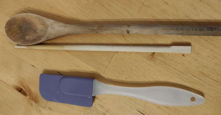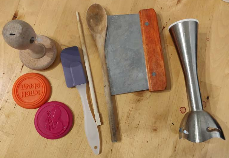 Ensuite, je vous conseille d’avoir 2 spatules ou cuillère en bois. Pourquoi pas une ? si vous décidez de séparer votre pâte en deux pour en colorer une, il ne faudrait pas tacher celle que vous ne colorez pas.