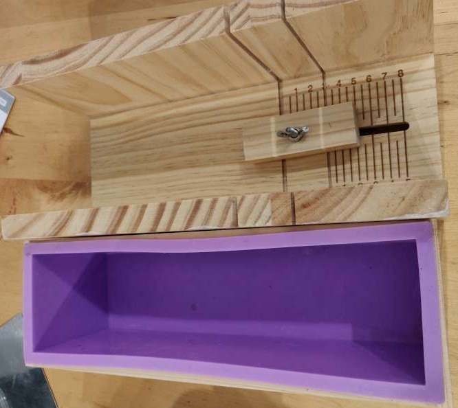 Pour le mouler, vous pouvez recycler à peu près n’importe quoi. La première fois j’avais utilisé une brique de lait vide. Puis j’ai investi dans un ensemble moule et socle de découpe avec un cutter. Ce n’est pas obligatoire vous pouvez très bien utiliser un fil à couper le beurre ou un grand couteau.